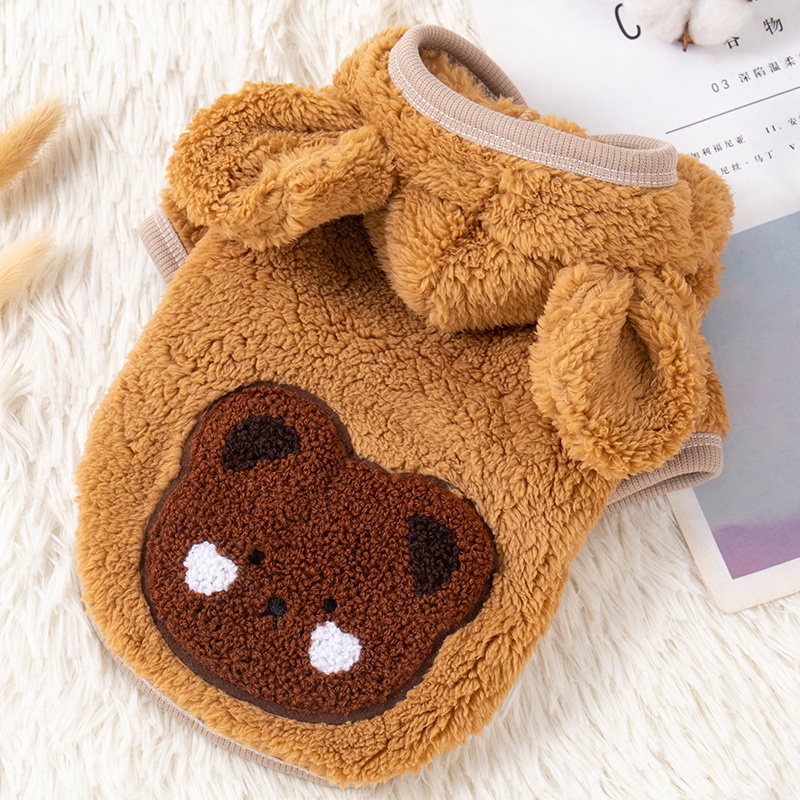 狗狗衣服秋冬季 小熊连帽绒衣泰迪比熊小型幼犬宠物猫咪保暖防掉毛