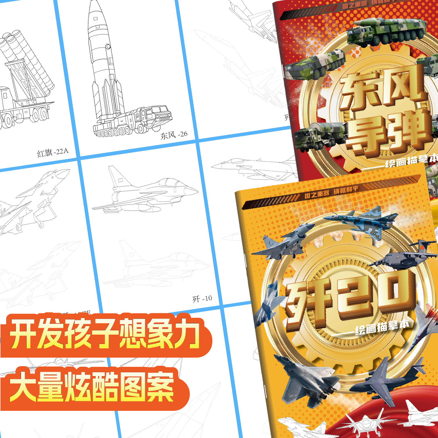 国之重器系列东风61歼20描摹本学生线稿临摹画本东风快递使命必达儿童填色本涂鸦卷提升孩子兴趣爱好摆脱手机