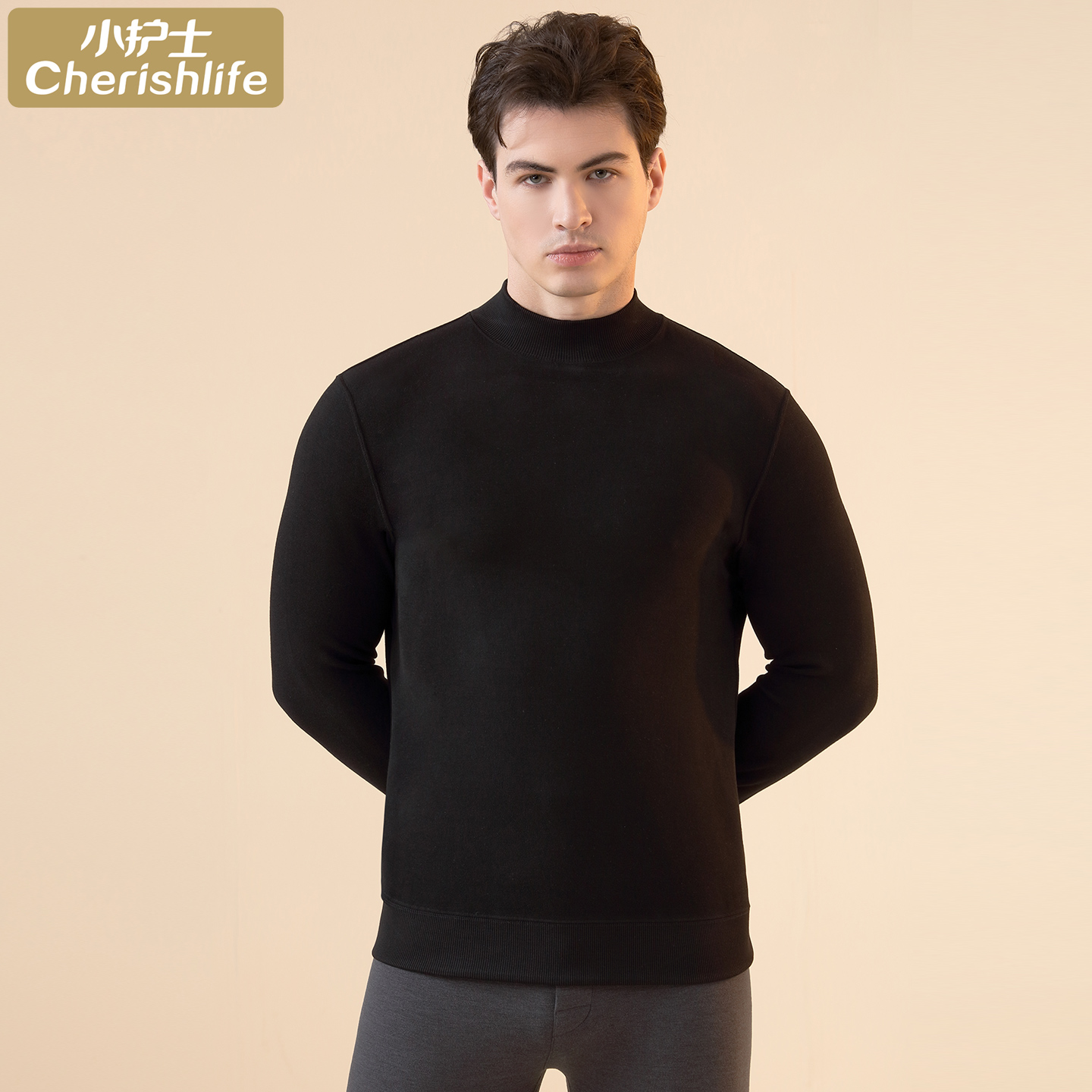 棉毛衫 寸领休闲上衣打底衫 秋冬外穿长袖 小护士半高领保暖内衣男士