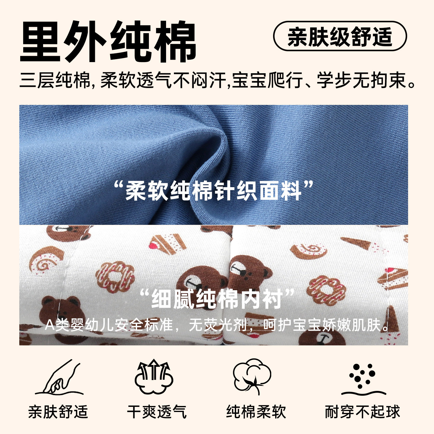 3岁婴儿纯棉裤 子 外出服女男童夹棉开裆裤 宝宝儿童秋冬背带棉裤