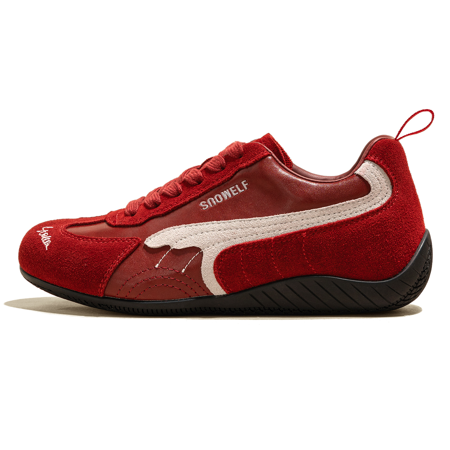 女款 复古皮面红色鞋 2025新款 巨好看内增高运动鞋 子 秋季 厚底德训鞋