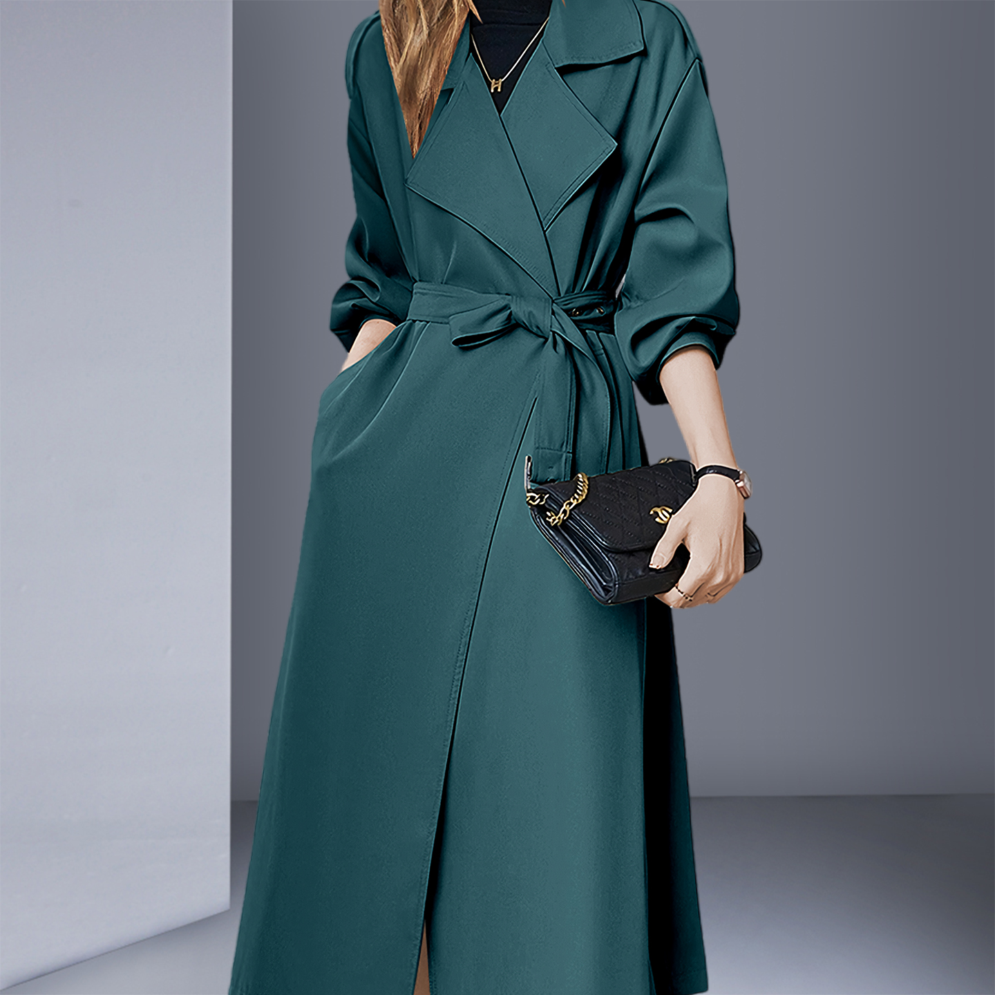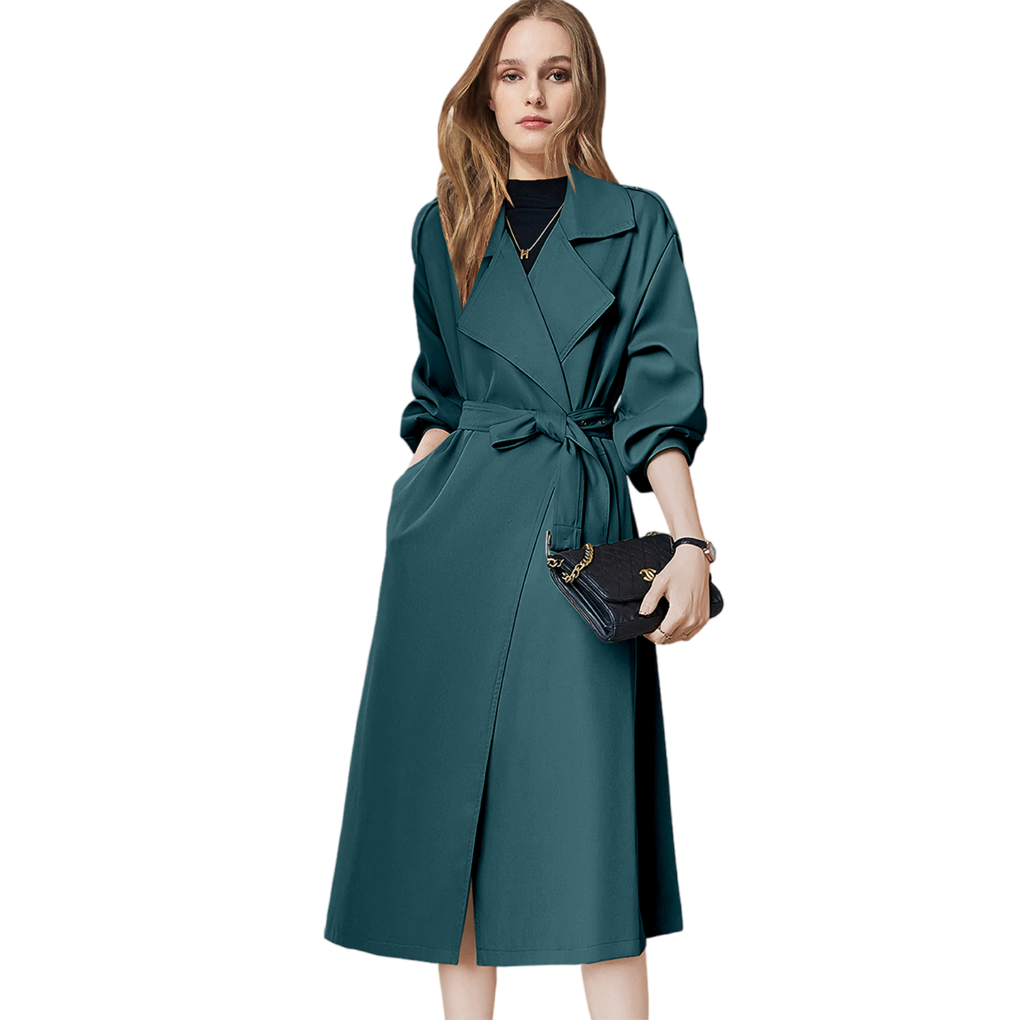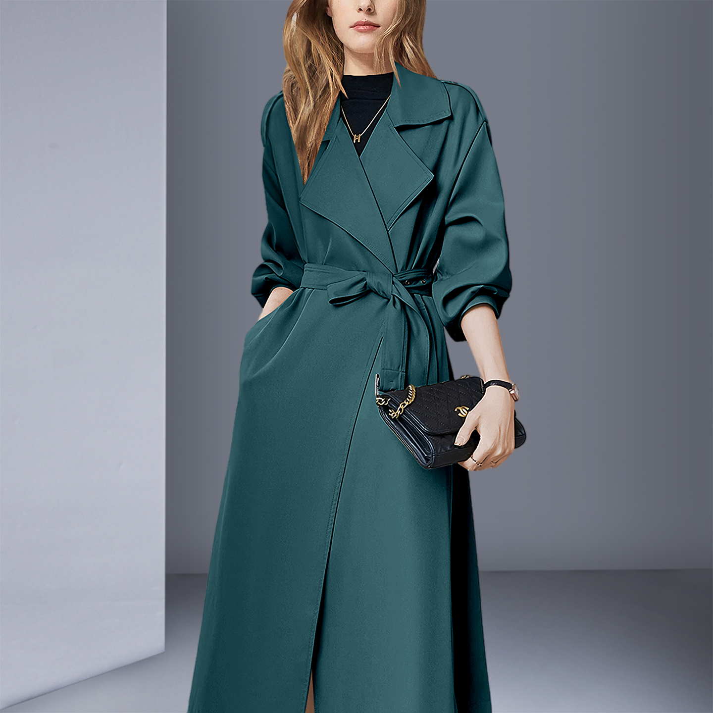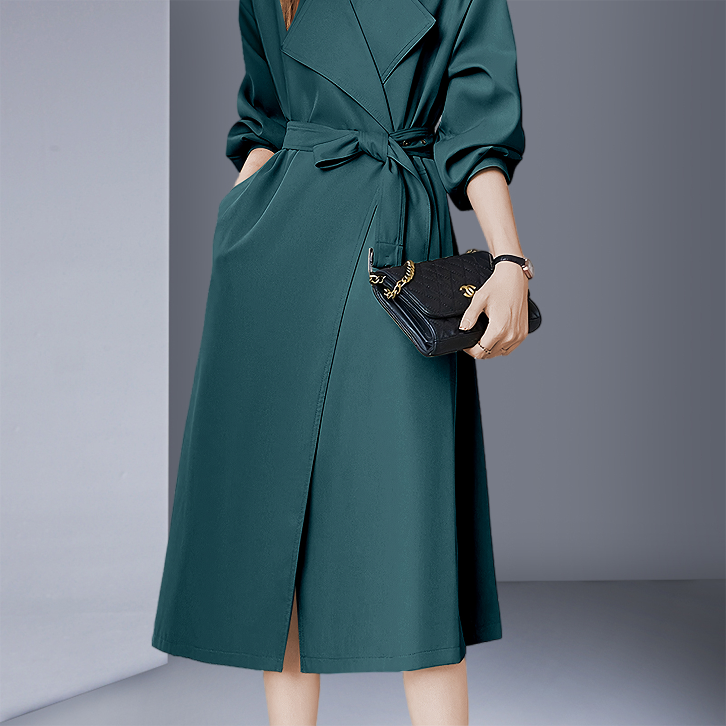 气质收腰显瘦慵懒风衣外套女中长高级感绿色大衣 法式 2025秋季 新款