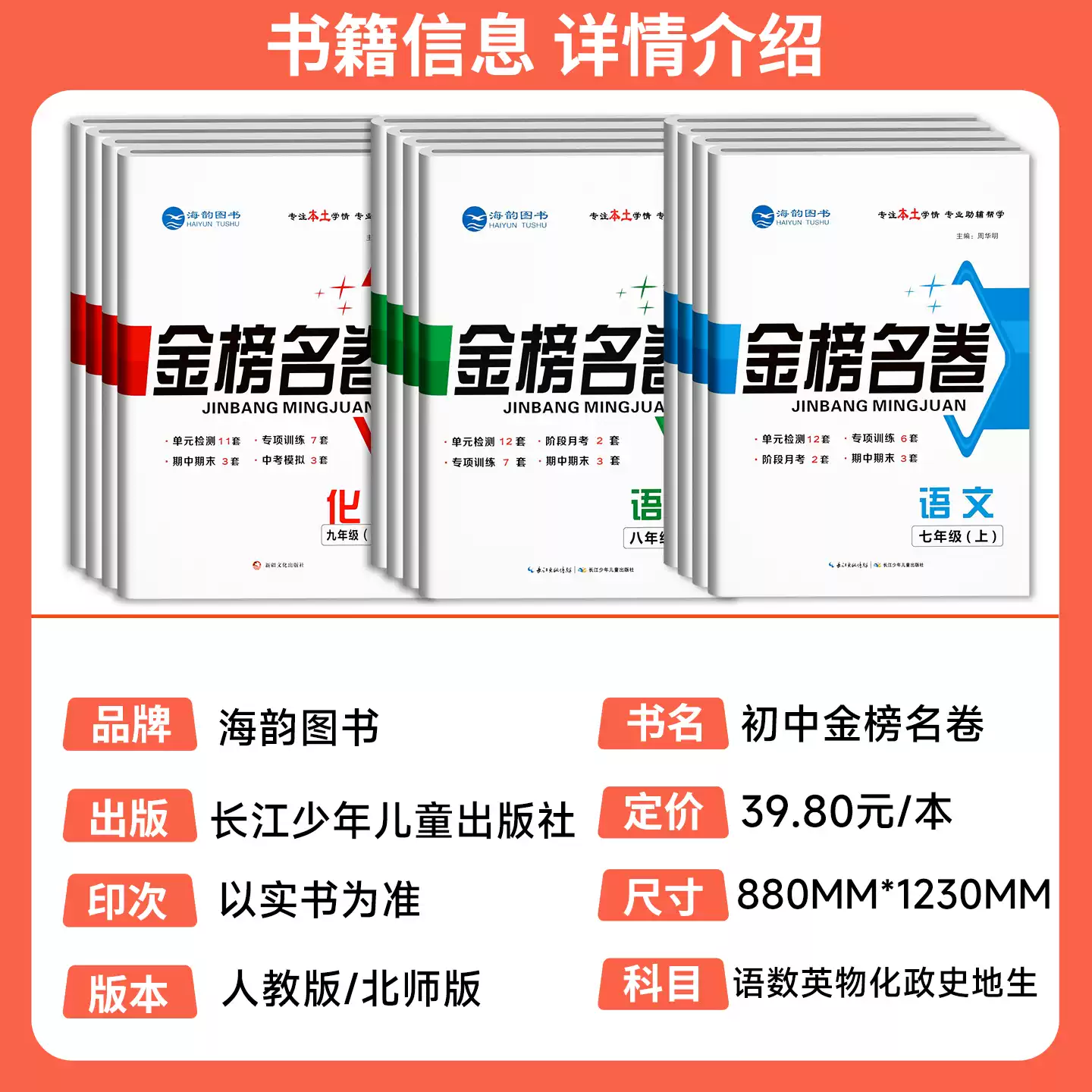 期中期末模拟冲刺练习册期末考试海韵图书 外研单元 2025秋新黄冈密卷金榜名卷七八九年级上册下册语文数学英语物理化学人教版 北师版