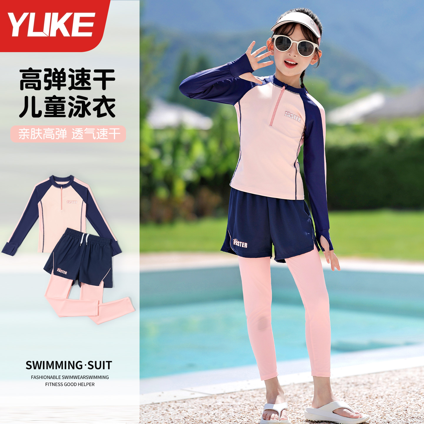 小女孩中大童分体泡温泉保暖游泳装 2025新款 长裤 儿童泳衣女童长袖