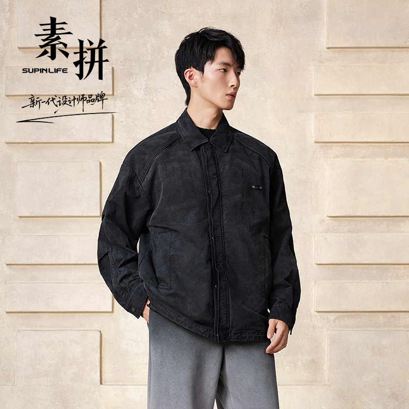 立领教练服外套 新款 查尔斯桃心 纯色cleanfit夹克男双面穿春秋季