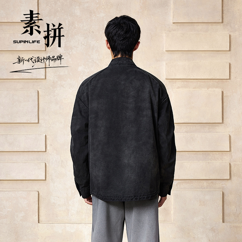 夹克上衣 潮牌美式 李一桐同款 INXXAPYD复古做旧牛仔外套男女同款