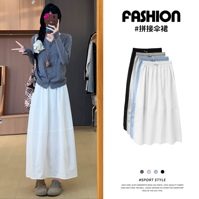 半身裙 高腰显瘦纯色百搭中长款 白色高腰抗皱伞裙女春秋季 2025新款