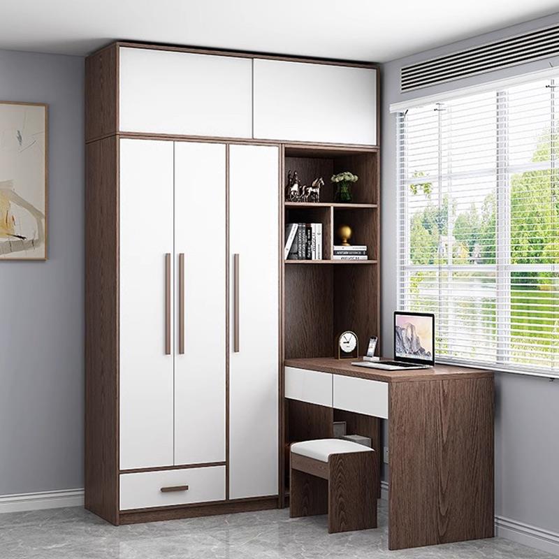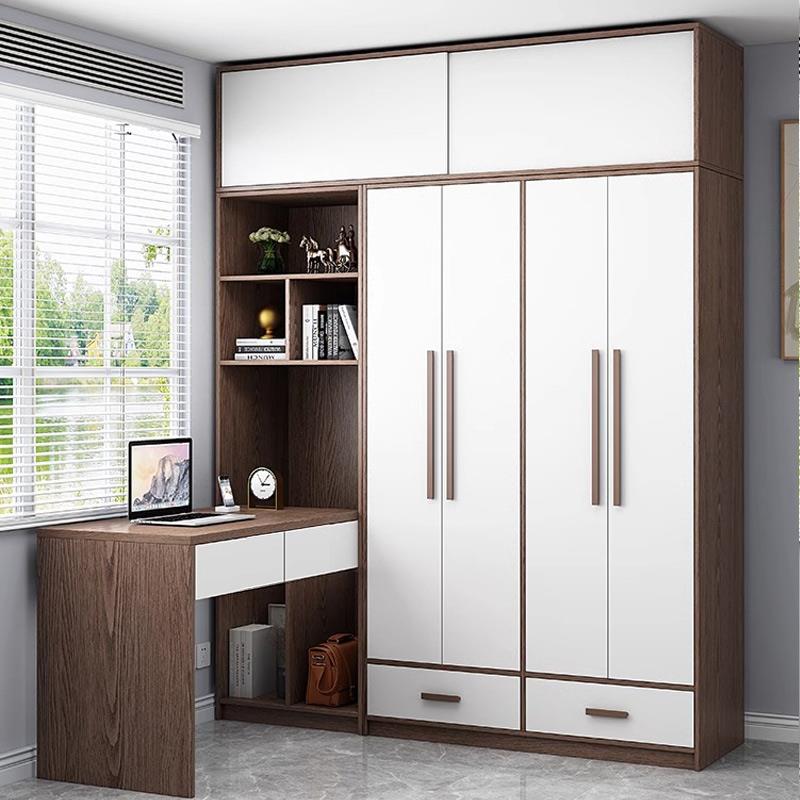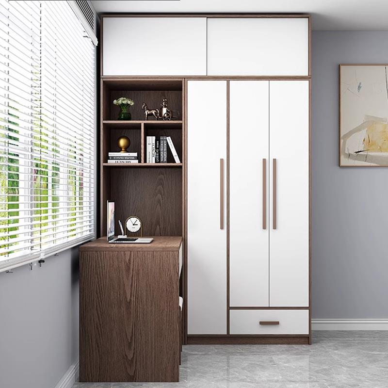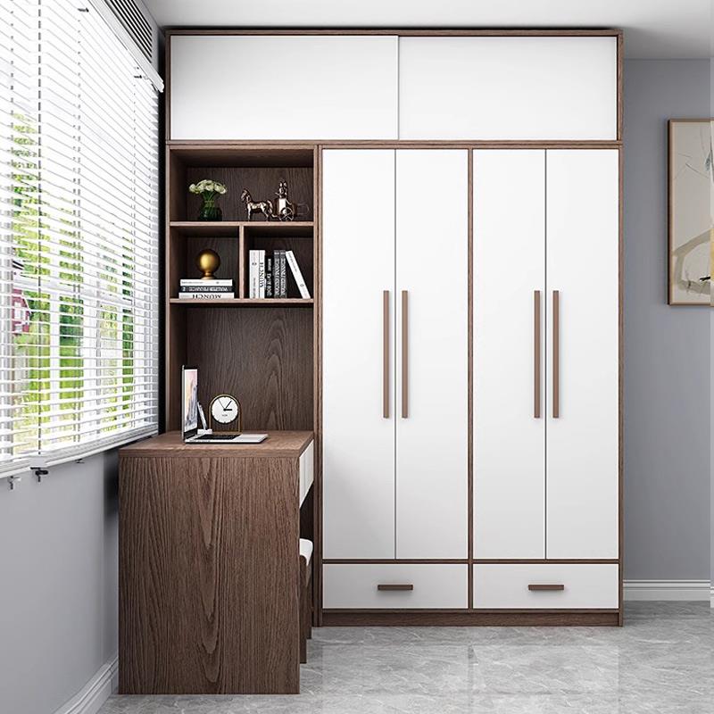 实木伸缩转角连体衣柜书桌一体小户型卧室拐角电脑桌加书柜组合