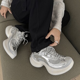 2025新款 秋季 赵露思同款 女鞋 女 环球厚底银色老爹鞋 百搭运动鞋 女款
