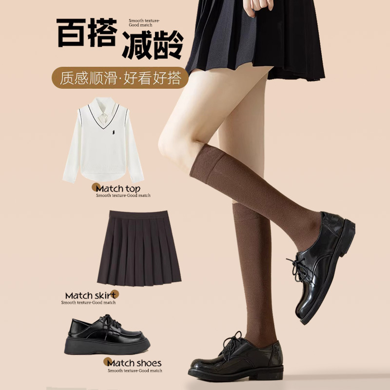 长袜花边配勃肯鞋 爆款 纯棉无骨2025新款 堆堆袜子女中筒袜春秋冬季