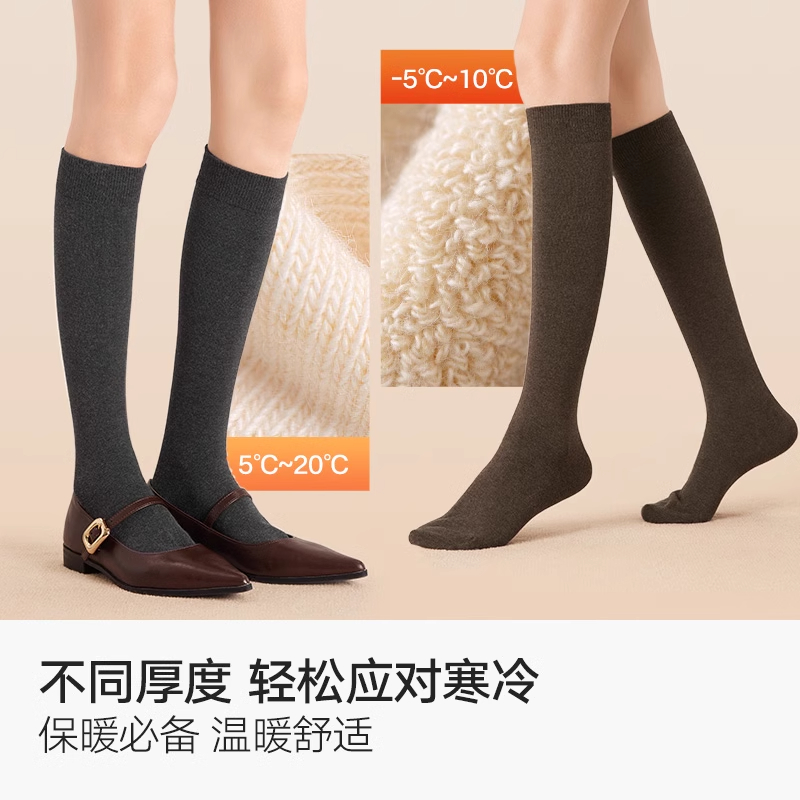 羊毛袜子女秋冬款 堆堆长袜 中筒袜加厚保暖睡眠防臭月子袜配勃肯鞋