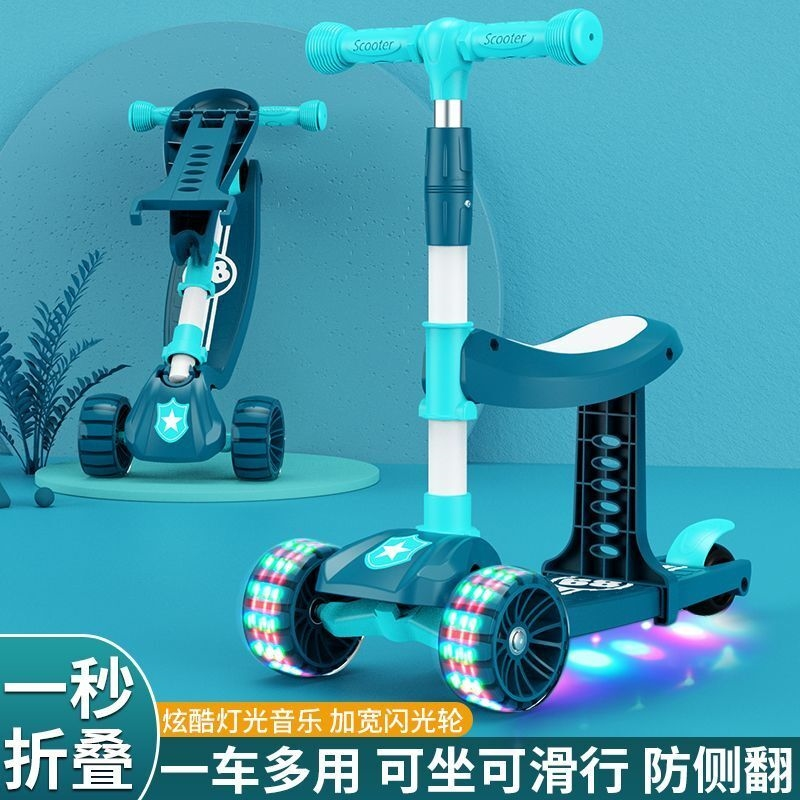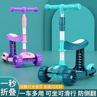 儿童带座滑板车折叠小孩男女123456宝宝三合一滑车加宽滑单脚滑行