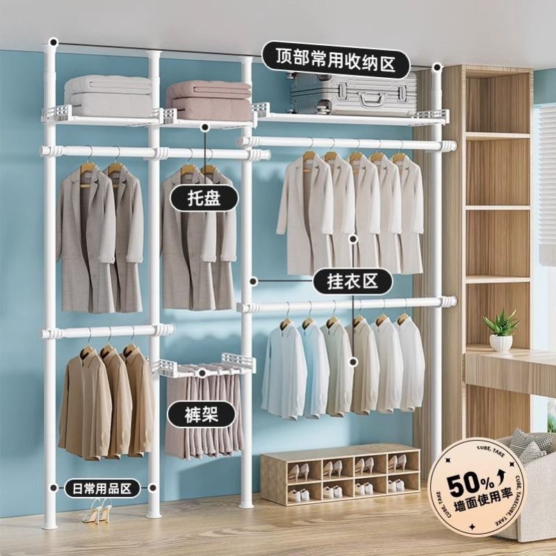 顶天立地衣架卧室组合简易衣柜家用收纳晾晒架落地开放式 衣帽架