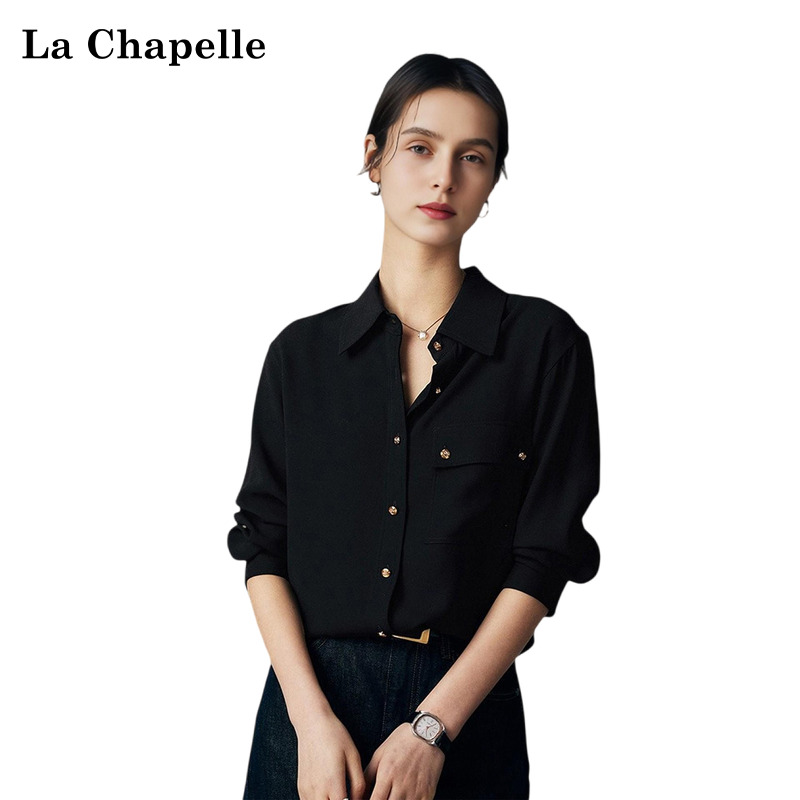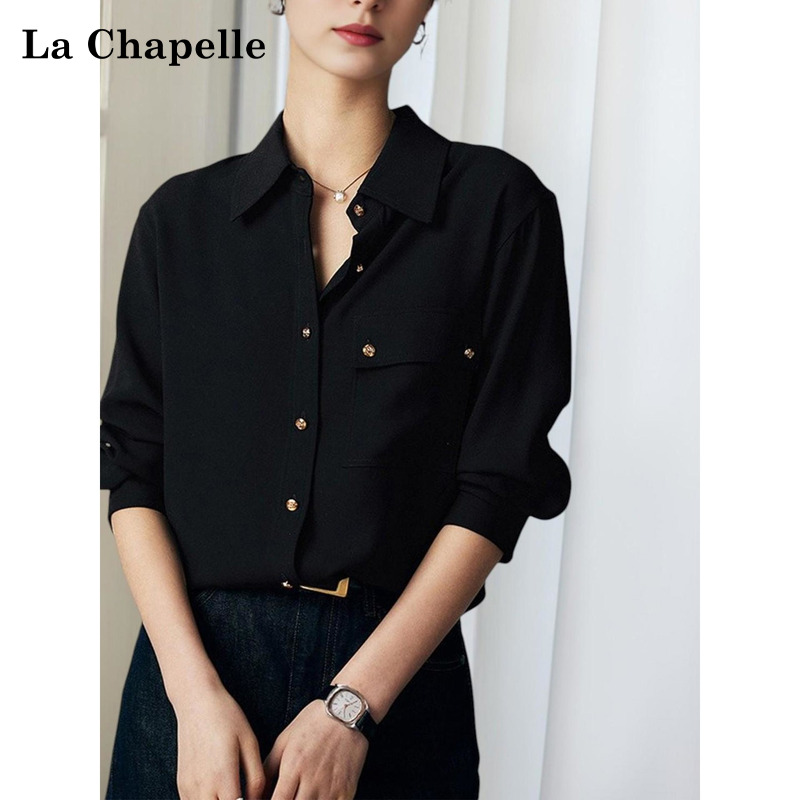 女2025秋冬新款 衬衫 叠穿优雅气质上衣 黑色polo领长袖 拉夏贝尔法式