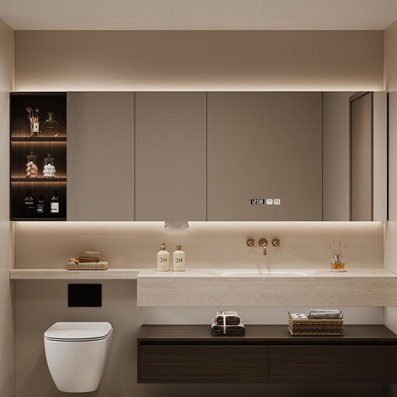 新款 储物除雾氛围灯带定制 单独智能镜柜镜子实木浴室卫生间挂墙式