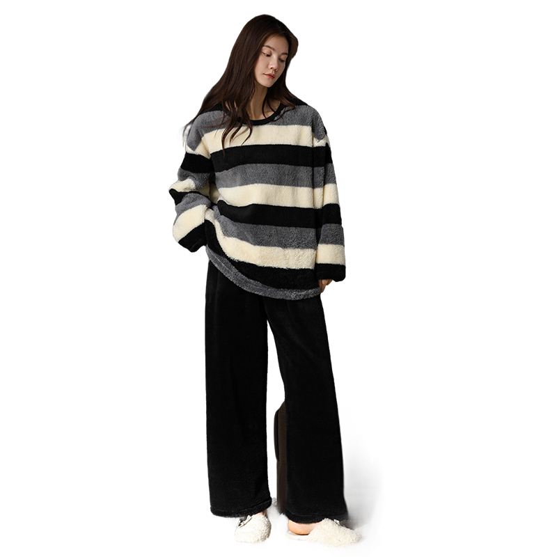 家居服睡衣套装 猫人珊瑚绒睡衣2025秋冬新款 保暖休闲大码 长裤 长袖