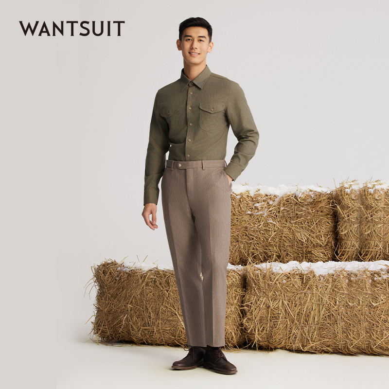 条纹休闲时尚 男长袖 翻领宽松衬衣506151 衬衫 三福2025秋冬新款