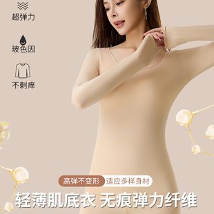 冬季 无痕保暖内衣女美肤发热肌底衣超薄款 女士套装 秋衣秋裤 打底衫