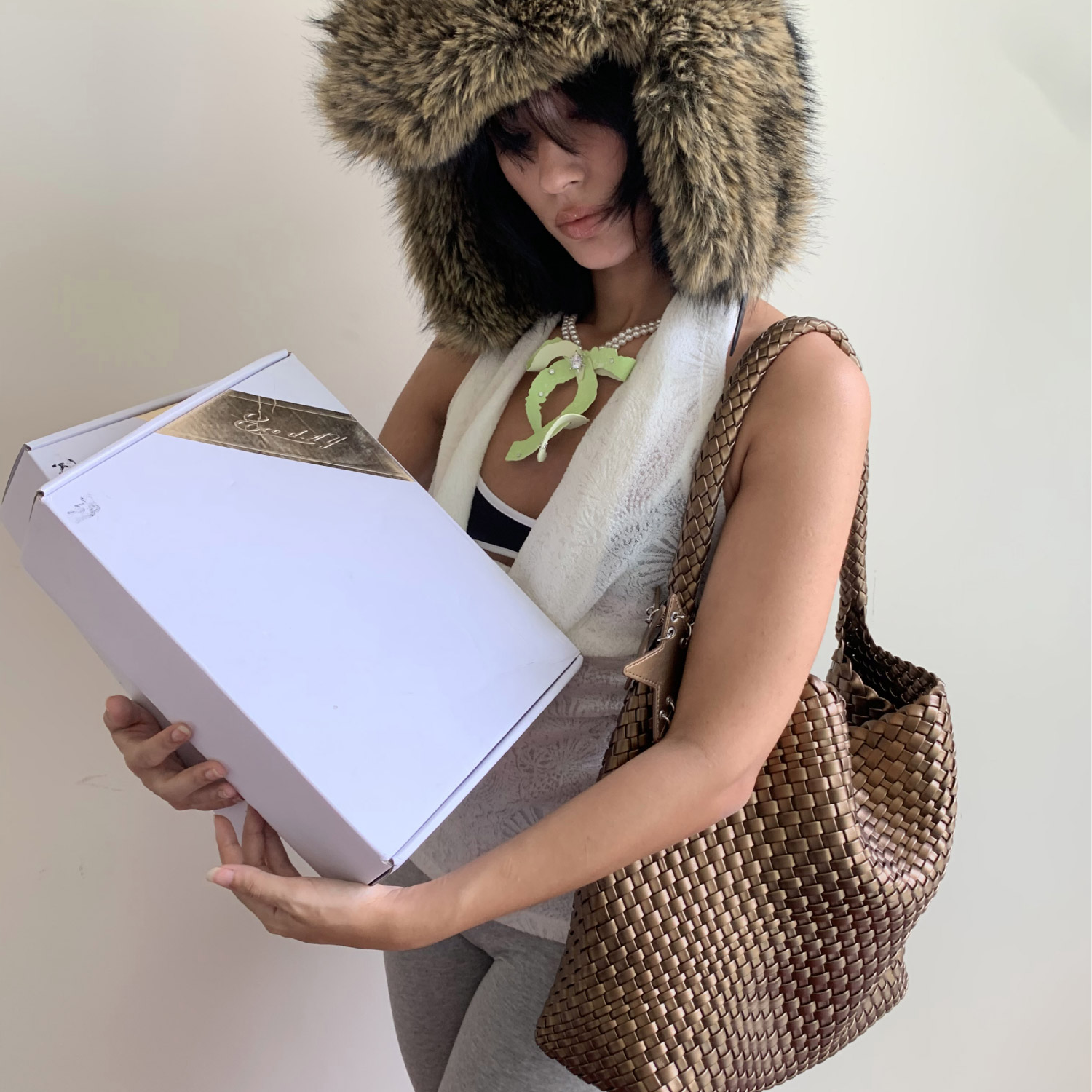 ECODAY秋冬原创香槟色编织托特包大容量 衣橱直播间 所有女生