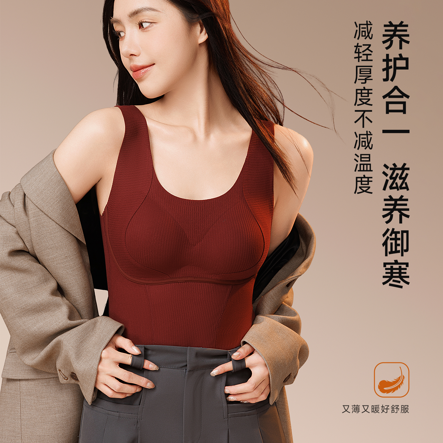 草本初色保暖背心女带胸垫秋衣2025新款 内搭肌底衣 秋冬吊带打底衫