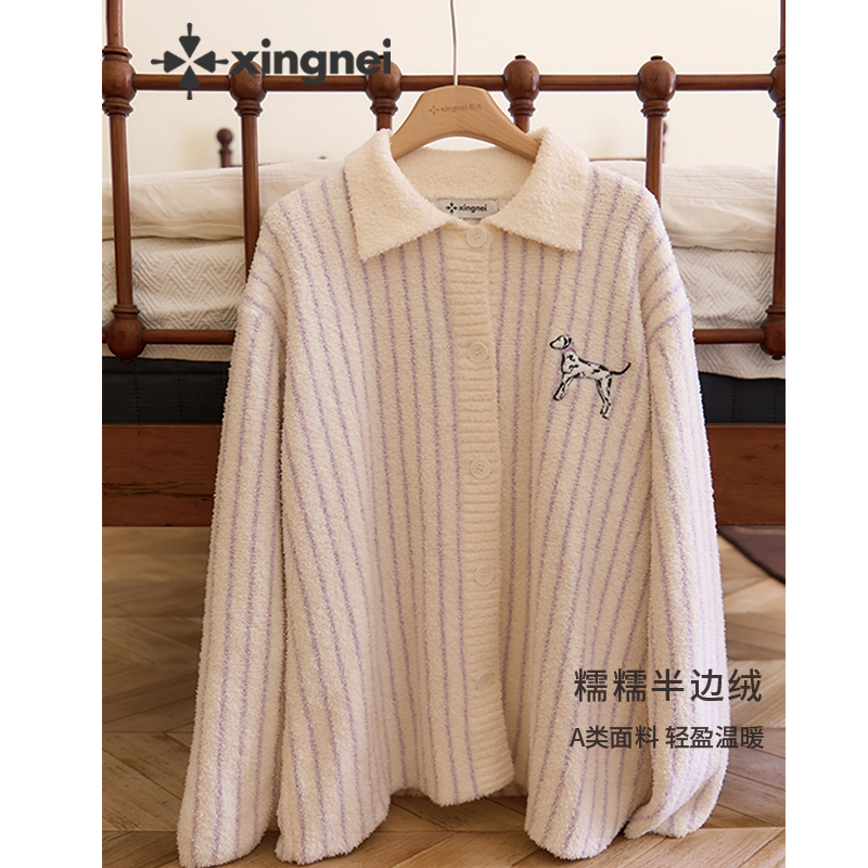 高级感家居服可外穿 2025年新款 形内睡衣女半边绒加绒套装 条纹冬季