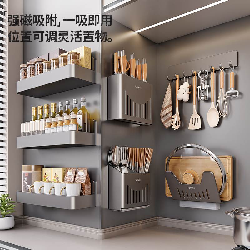 磁吸置物架厨房引磁软布墙上装 饰磁铁配件调料刀具筷子勺子收纳架