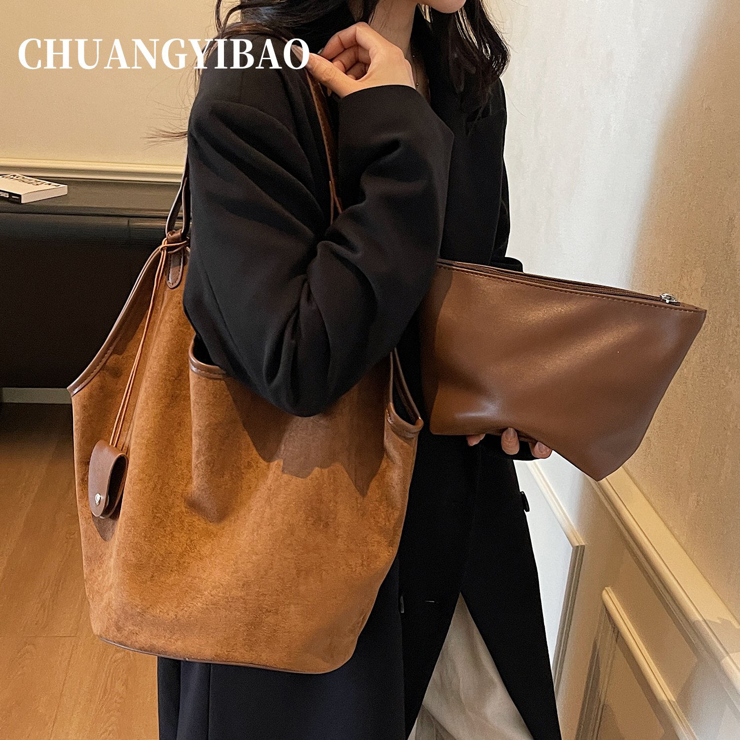 帆布包包女大容量新款 大学生手提袋单肩通勤托特包包小包包水桶包