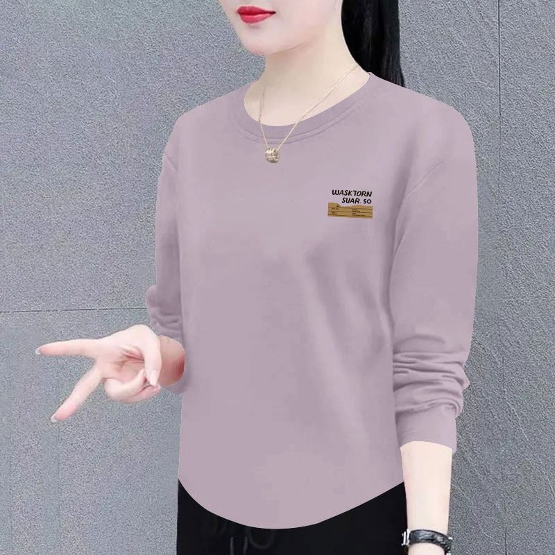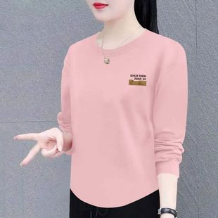 百搭宽松爆款 100%纯棉长袖 洋气韩版 时尚 ins上衣 弧形T恤女春秋新款