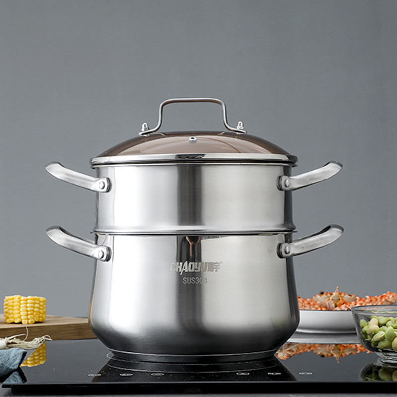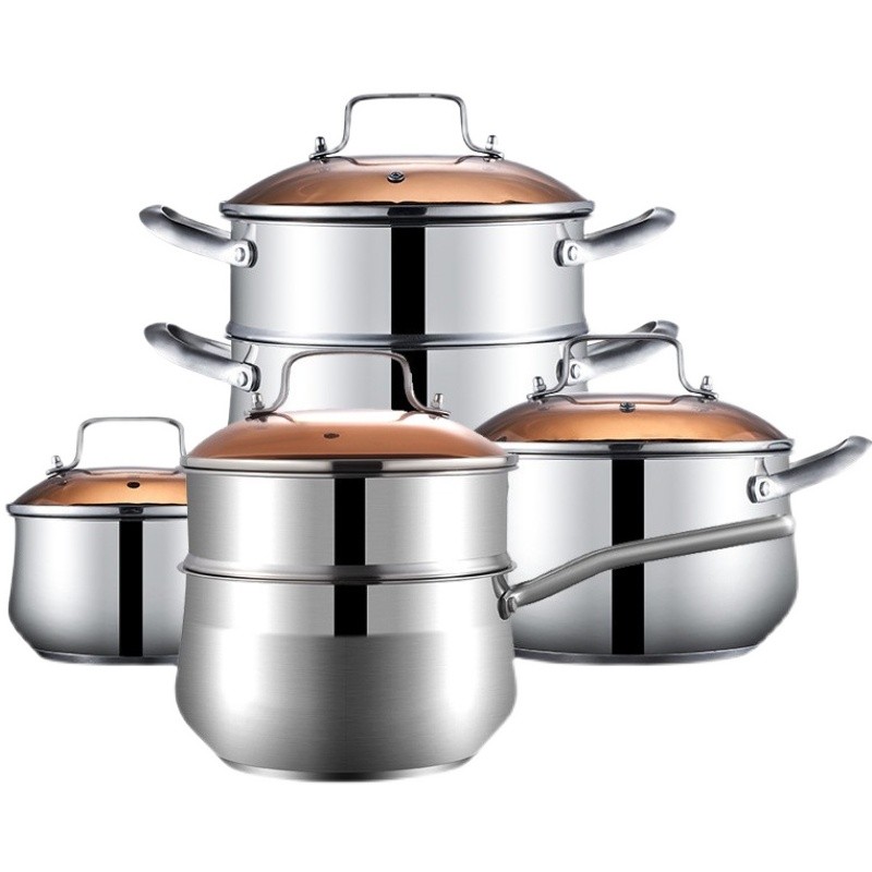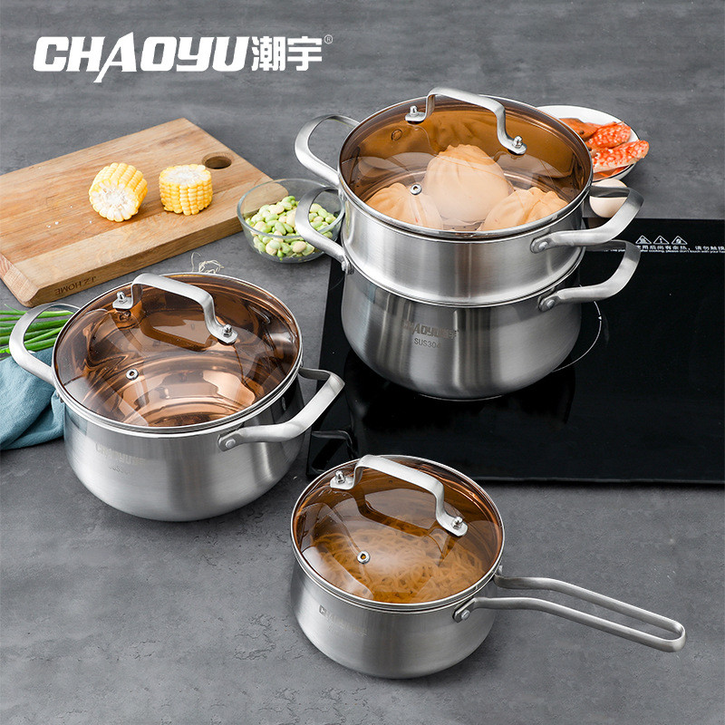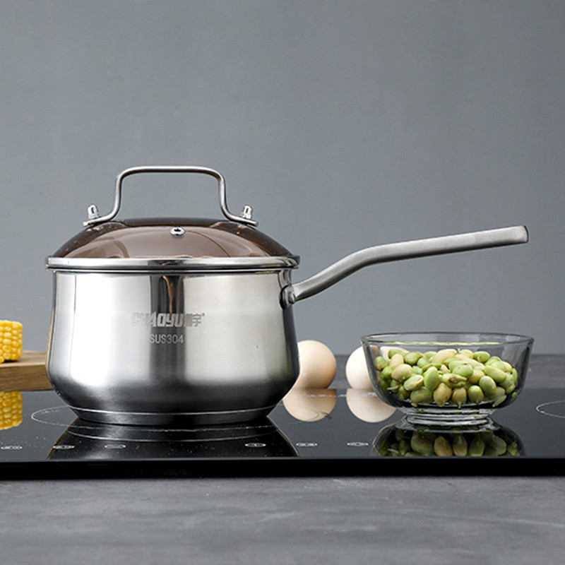 潮宇304不锈钢小奶锅加厚汤蒸锅宝宝副食品锅不沾锅家用电磁炉燃
