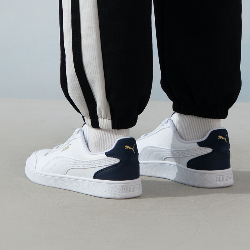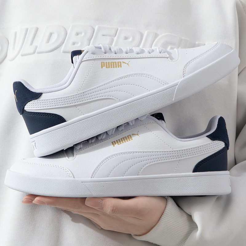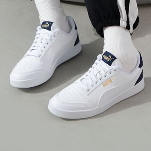 新款 休闲鞋 情侣运动鞋 特步板鞋 白色百搭皮面小白鞋 秋季 女鞋 子 男鞋