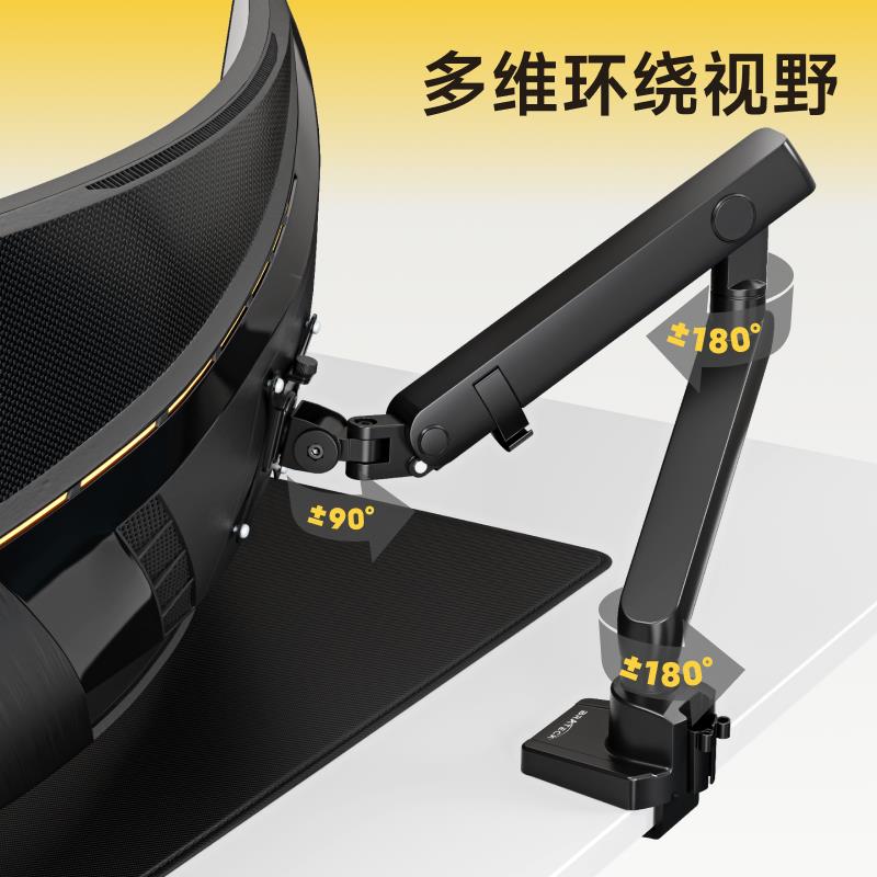 Brateck北弧显示器支架机械悬臂桌面免打孔带鱼屏增高底座架E500