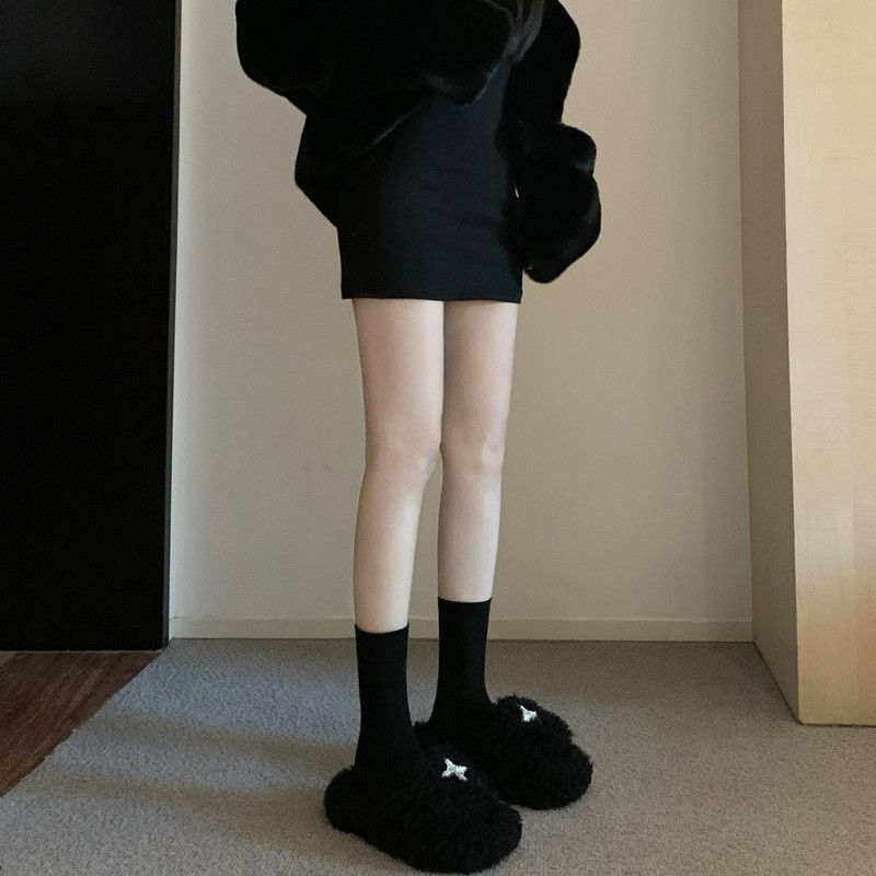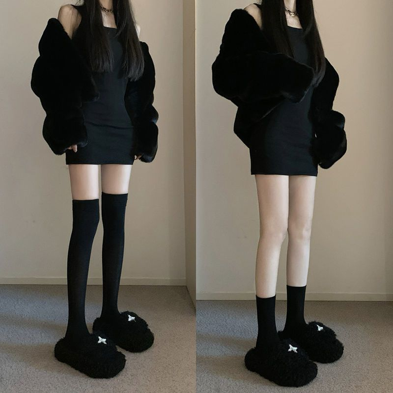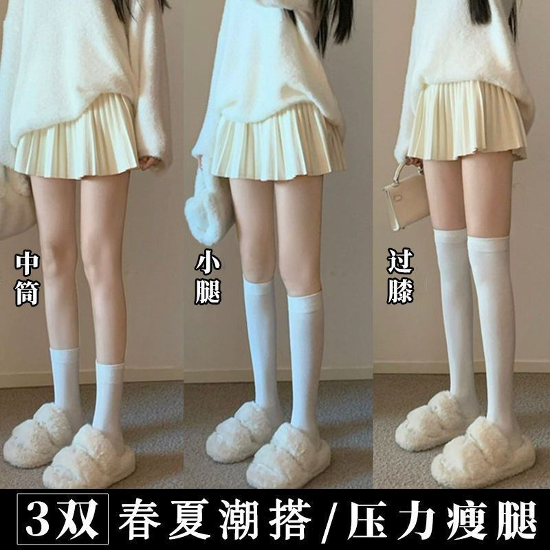 薄款 黑色袜子女中筒袜春秋季 堆堆长筒过膝袜jk压力瘦腿小腿袜夏季