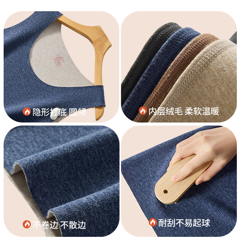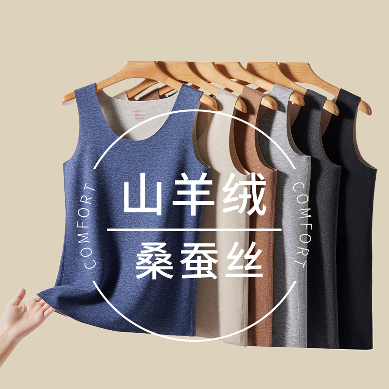 芬腾羊毛蚕丝保暖内衣男绒德无痕发热内穿加绒加厚打底背心冬上衣