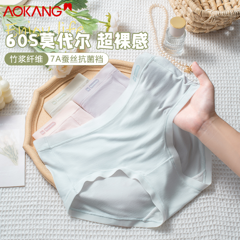 中腰女三角裤 纯棉透气裆亲肤莫代尔短裤 蕉内银皮300S女士内裤 3件
