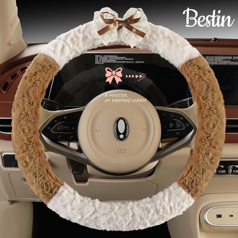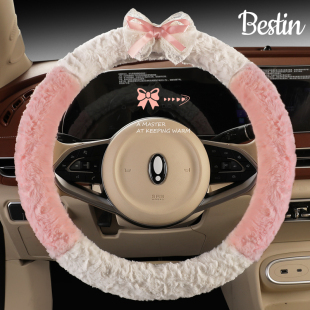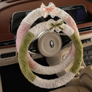 冬季 专用防滑保暖把套 短毛绒女神可爱蝴蝶结汽车方向盘套女生时尚
