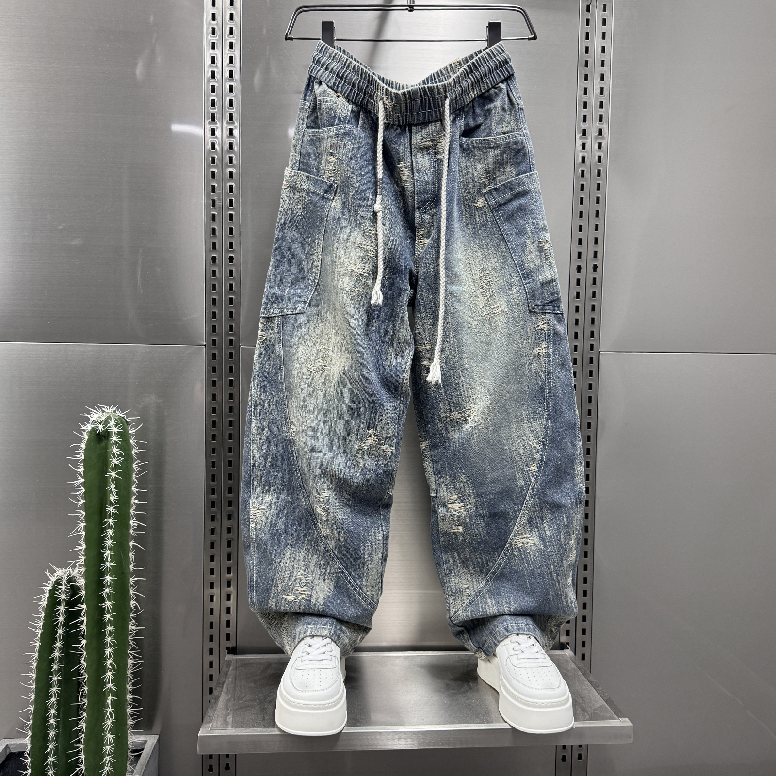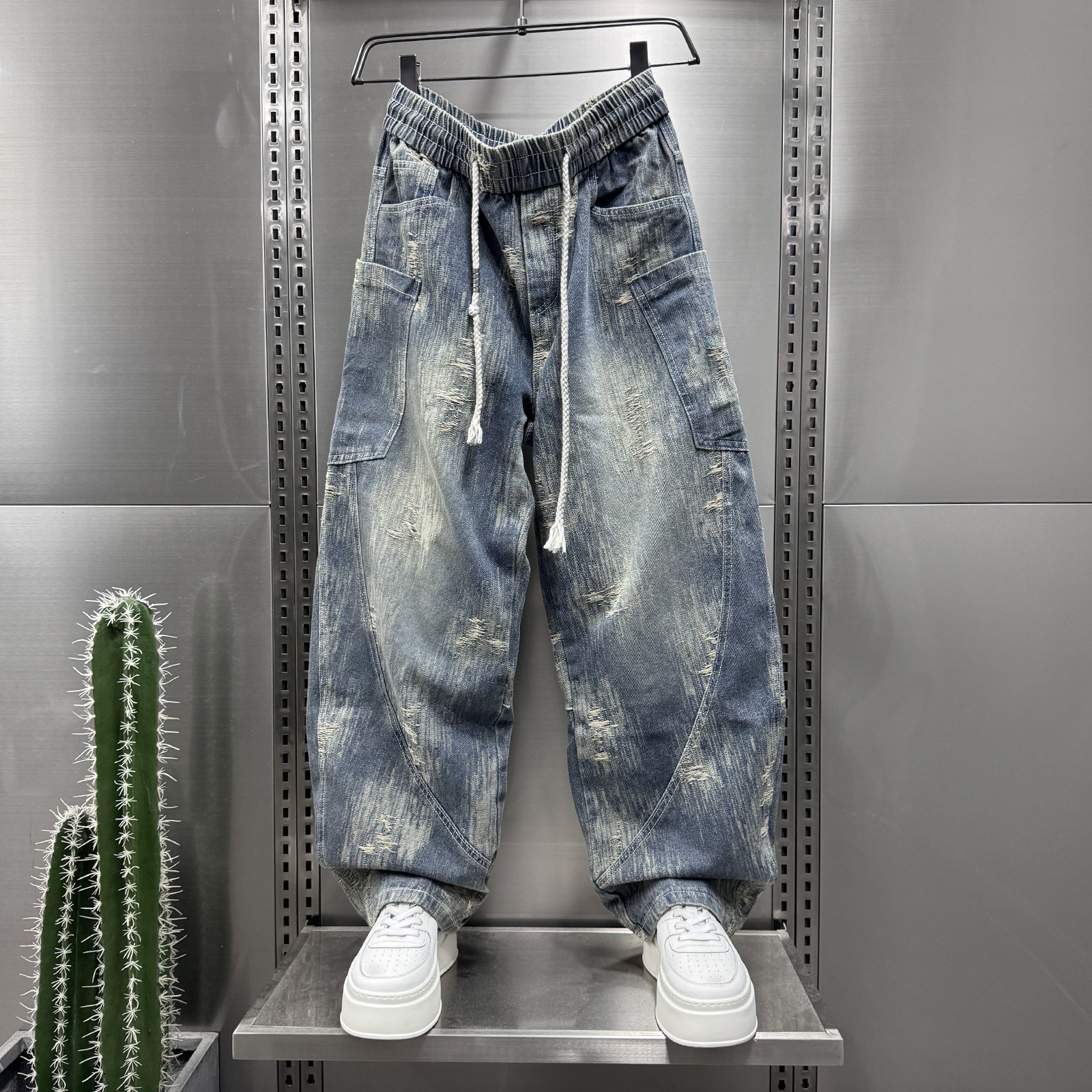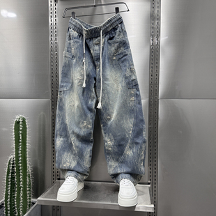 潮牌宽松直筒老爹裤 轻奢欧美风小众设计感弯刀牛仔裤 2025秋冬新款