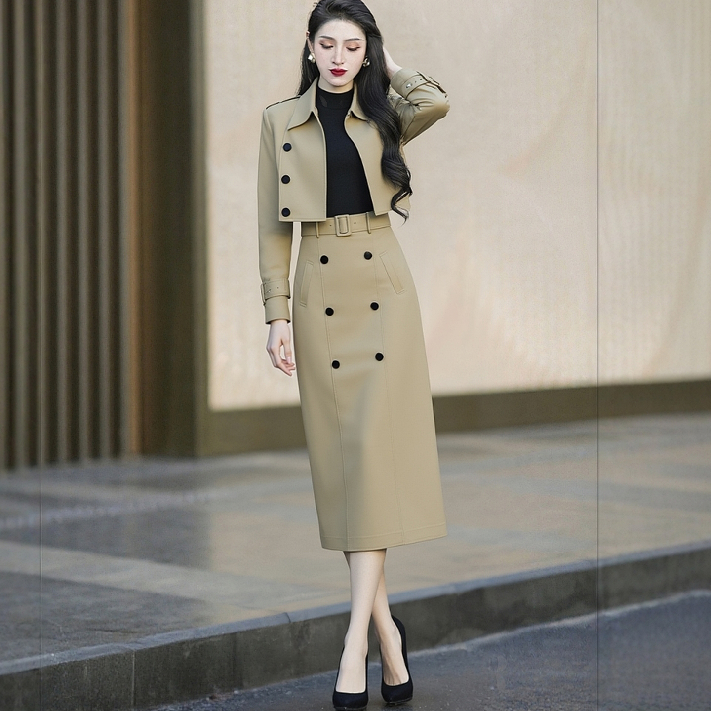 工装 英伦风复古卡其时尚 新款 女2025秋装 外套包臀半身裙两件套 套装