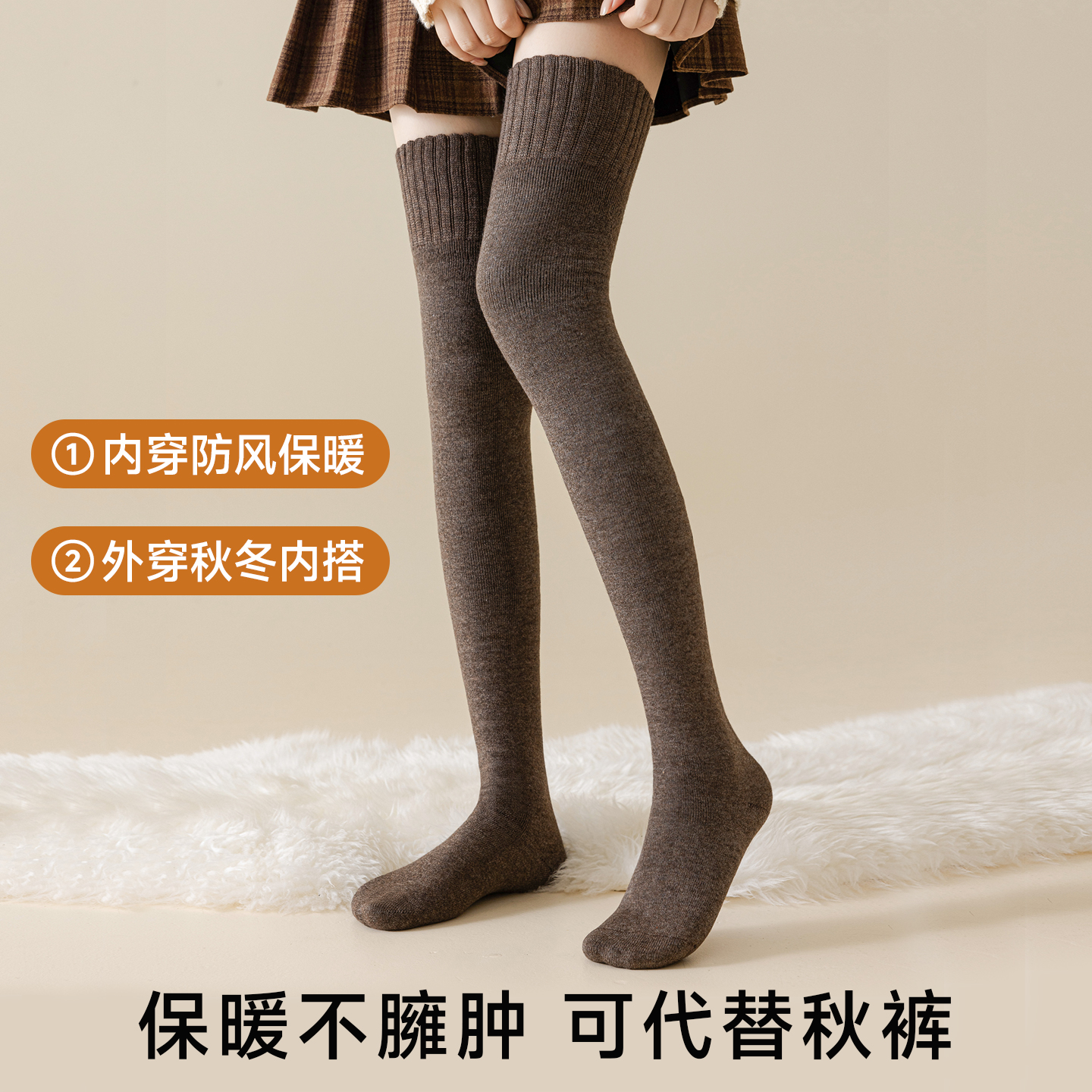 长筒靴袜子女搭配靴子小腿堆堆过膝袜春秋内搭白色大腿长筒袜羊毛
