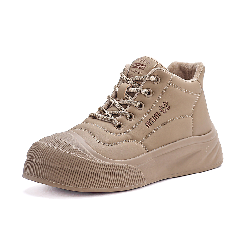 靴子 真皮防水厚底增高工装 森马马丁靴男秋季 高帮百搭休闲白色板鞋