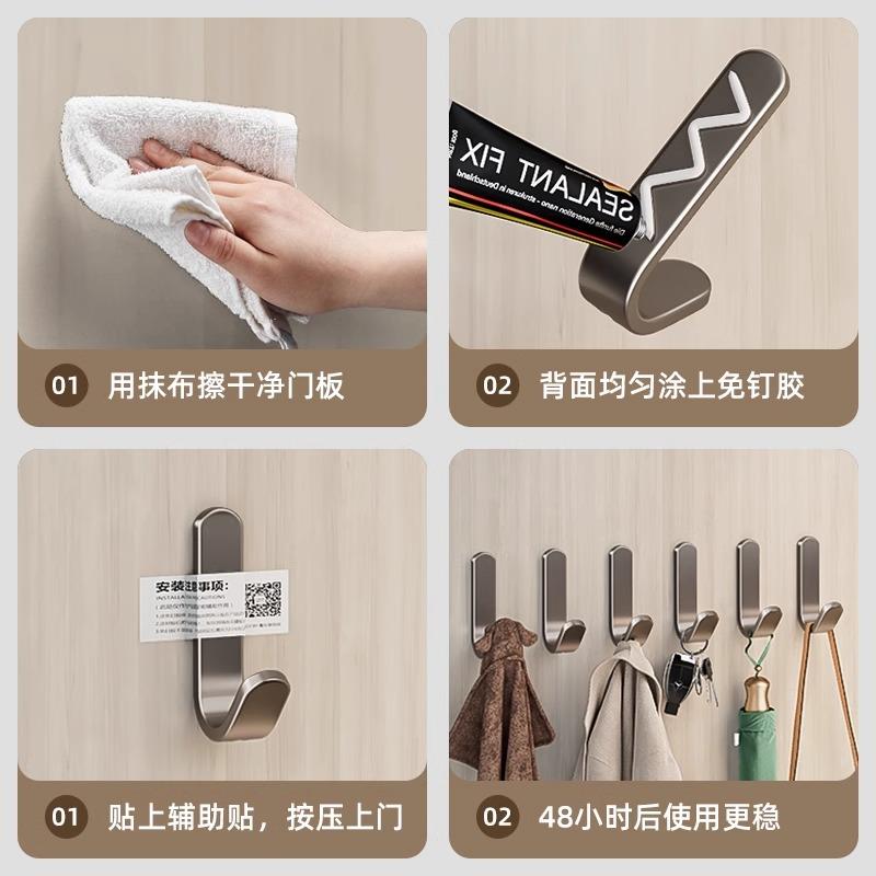 不锈钢免打孔挂钩强力承重粘胶挂衣钩子厨房浴室门后粘贴壁挂粘钩