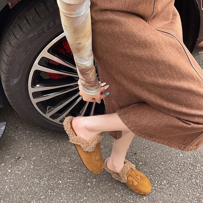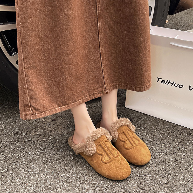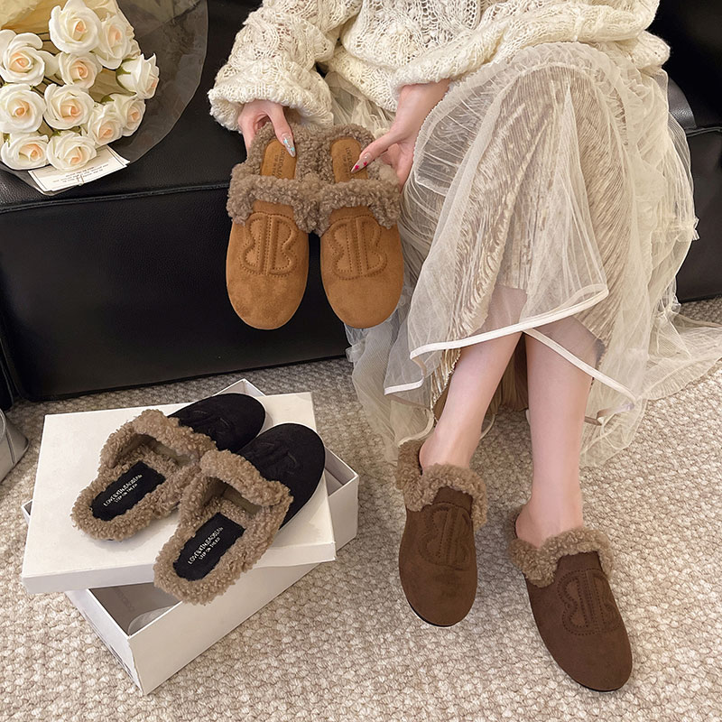66001 秋冬加毛包头半拖鞋 DevoLife软木拖鞋 女加绒保暖休闲毛毛鞋