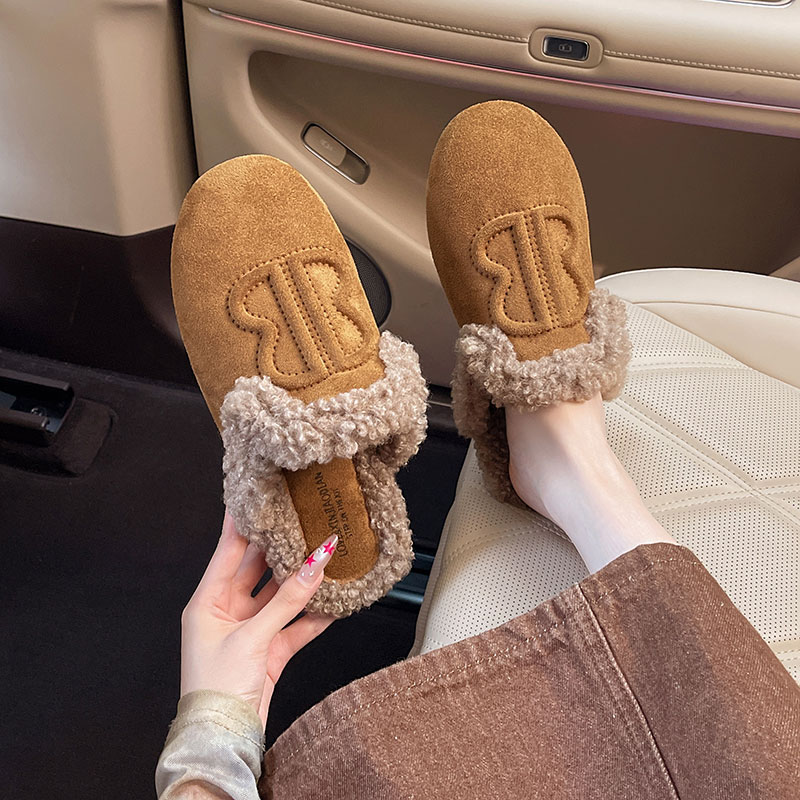 防滑一脚蹬拖鞋 日式 秋冬2025新款 女款 室内家居包头棉拖 静音棉拖鞋