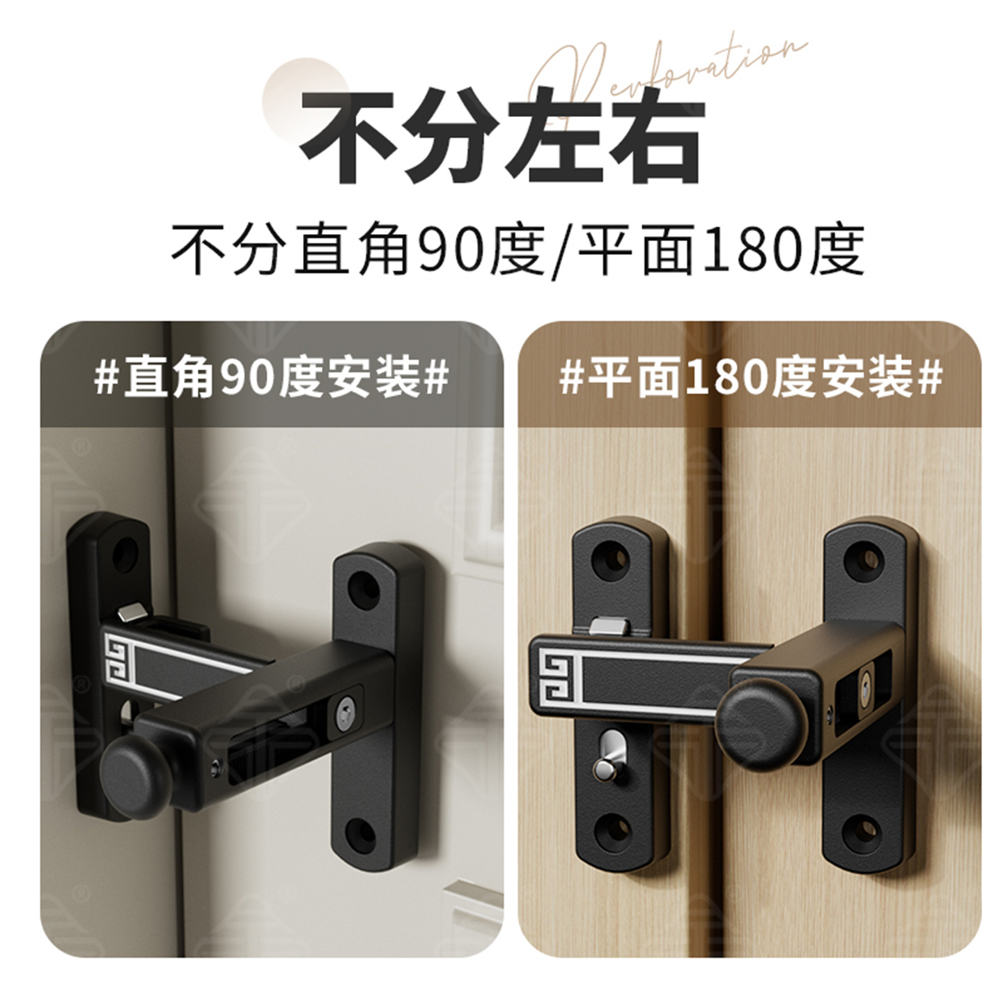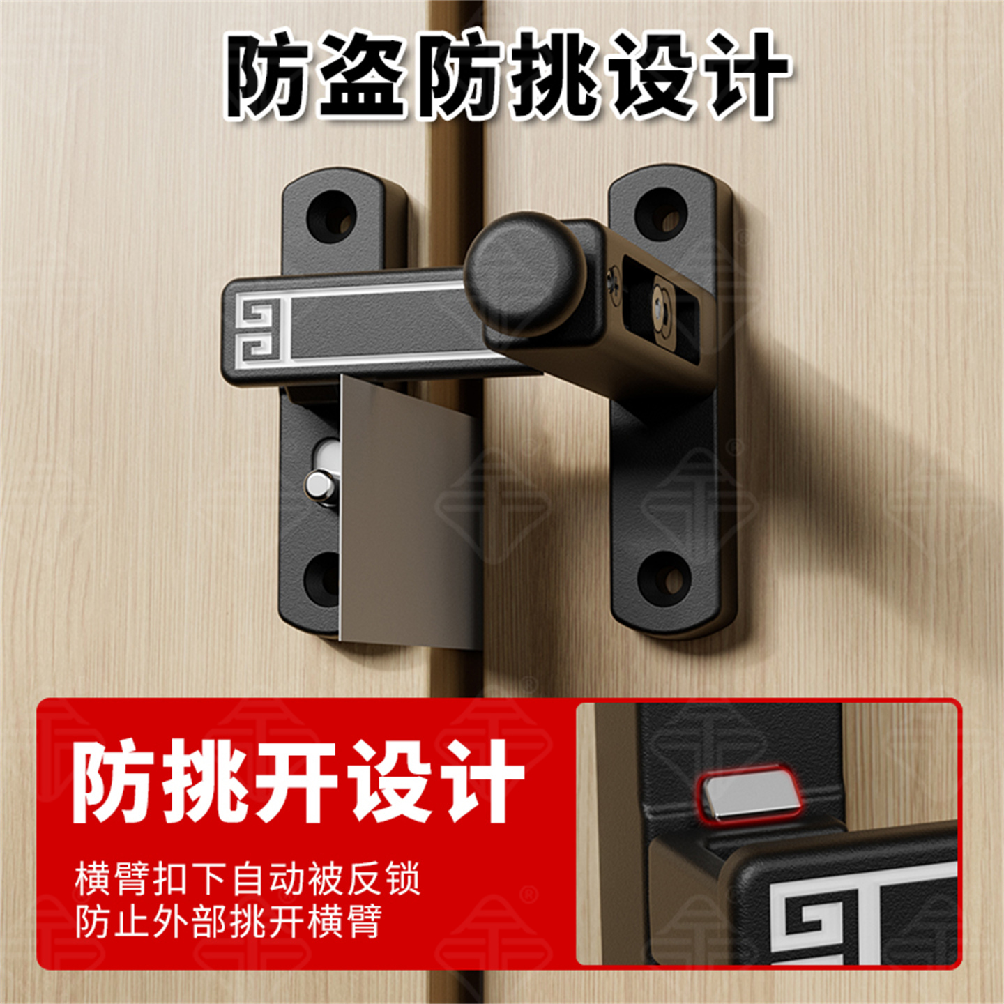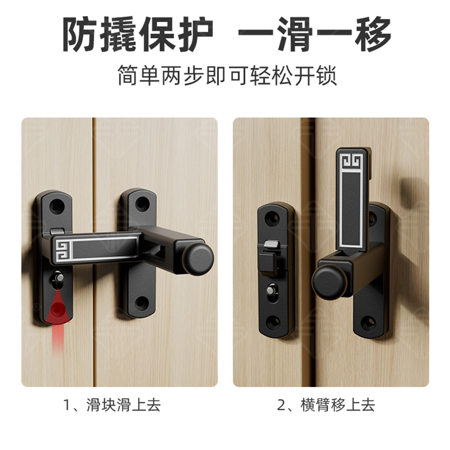 室内房门免打孔门闩锁扣平开门搭扣落差可调节柜门防盗锌合金卡扣