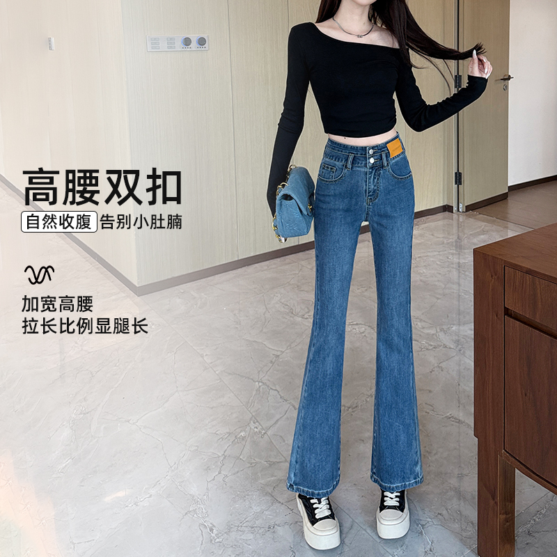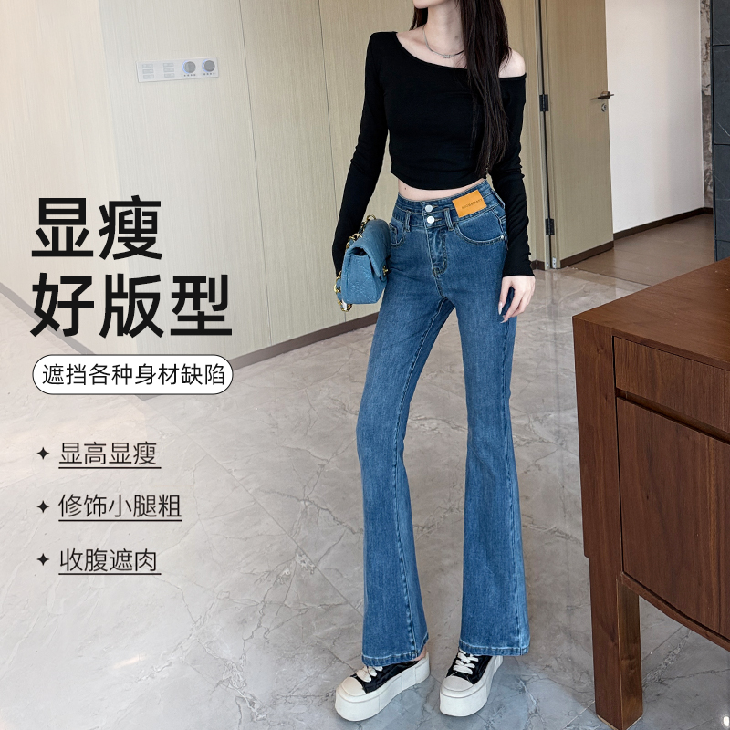 显瘦高腰秋冬高级感喇叭裤 爆款 子 女2025年新款 复古蓝微喇牛仔裤