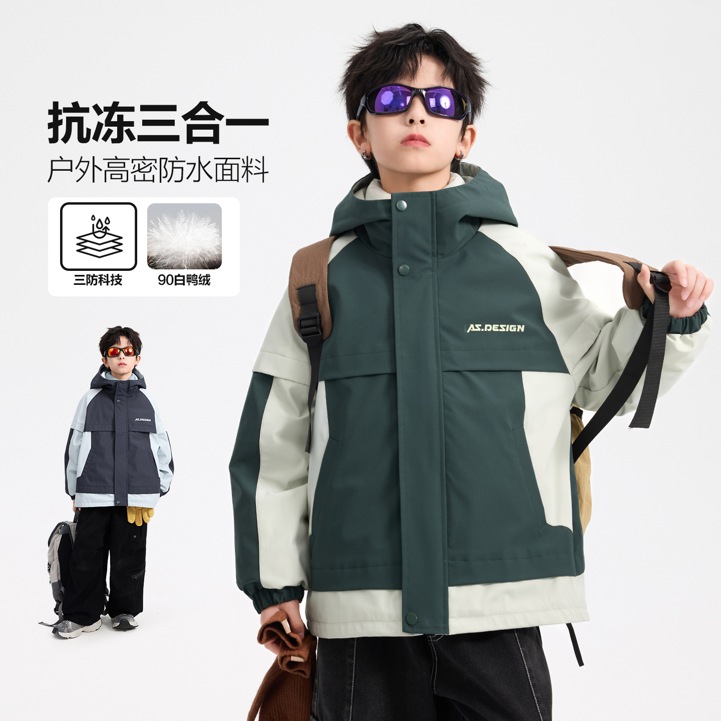羽绒服冲锋衣外套冬户外防水防风羽绒内胆外套 骆驼女装 五合一