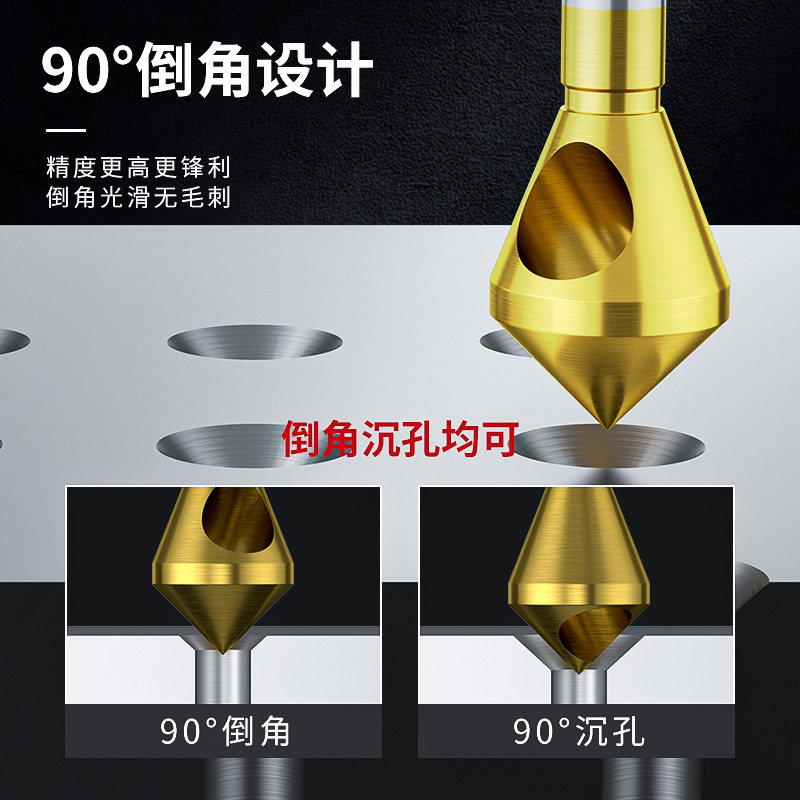 斜孔倒角器倒锥度孔螺丝沉孔刀倒角刀90度钻头去毛刺扩孔器内排屑