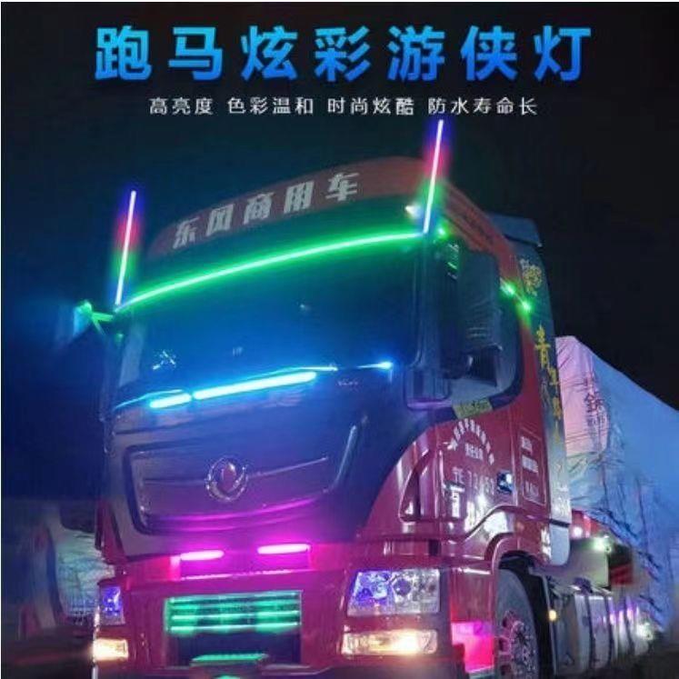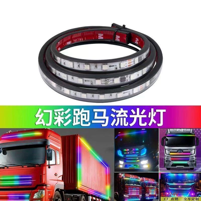 24V货车跑马灯流水灯七彩遥控流光灯爆闪中网灯遮阳板游侠灯改装