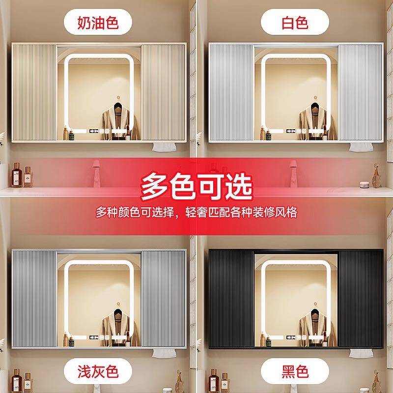 浴室风水镜柜单独推拉移门隐藏式 智能镜子防雾卫生间厕所收纳储物