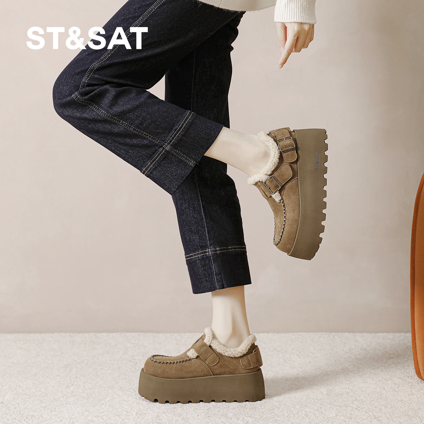 星期六加绒厚底松糕鞋 毛毛勃肯鞋 女鞋 雪地靴棉鞋 秋冬时尚 St&Sat