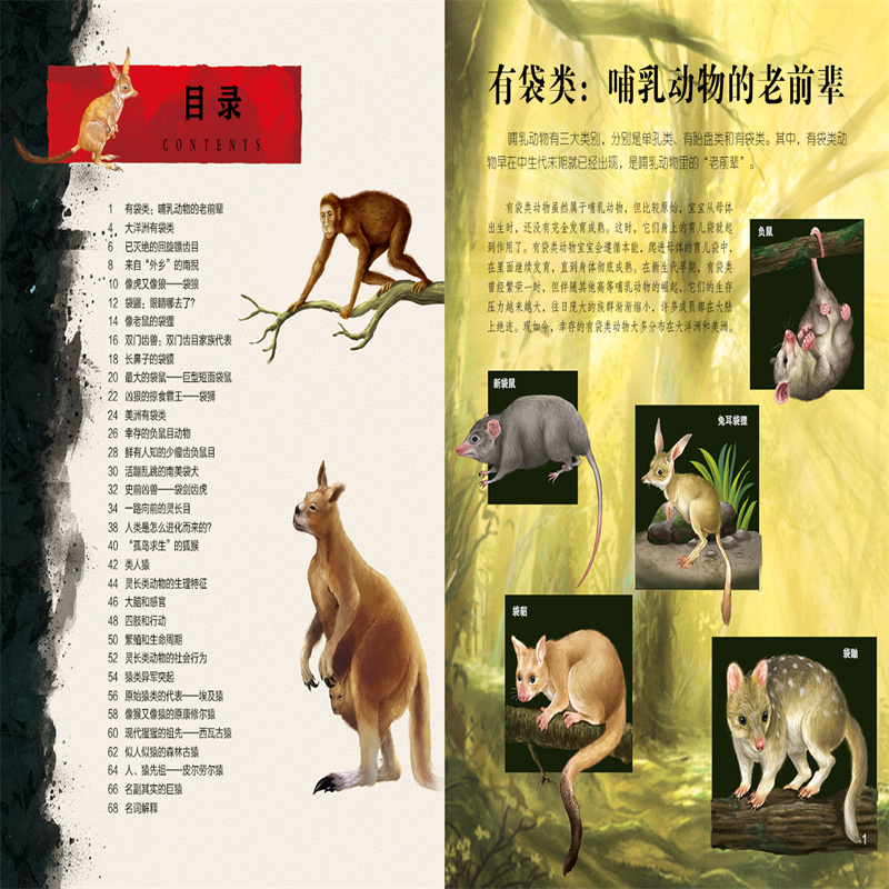 编者 贾跃明 绘画 正版 童书 穿越地球46亿年11有袋类和灵长类动物 央美阳光化学工业儿童读物 科普百科纸质书籍 图书生命简史